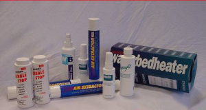 - Vinylreiniger: Maandelijks gebruik van deze vinylreiniger houdt het oppervlak van uw aquamatras schoon, fris en soepel. Het voorkomt uitdrogen van uw matras en veiligheidsvoering. Opspuiten en met een zachte doek inwrijven. Zeer vuile oppervlakken nogmaals behandelen.